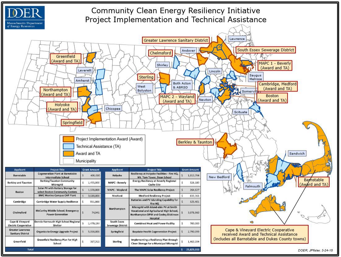 Massachusetts DOER awards $7.4 million to critical infrastructure resilient power projects
